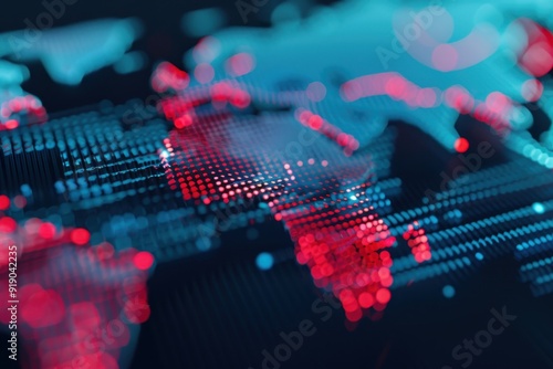 Futuristic World Map with Data Visualization, sleek design, vibrant colors, interactive elements, representing global trends and insights, perfect for modern presentations and tech discussions.