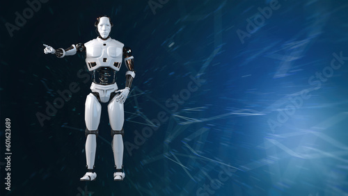 Futuristic world robots are running. Presentation of technology with robots. 3d rendering action of robot.