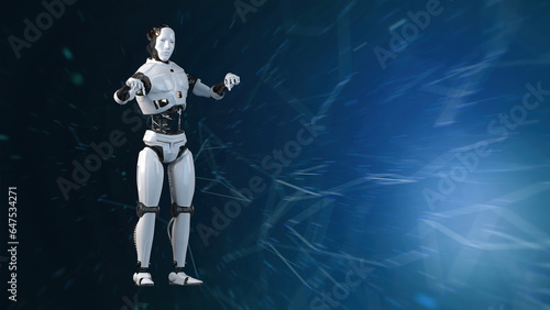 Futuristic world robots are running. Presentation of technology with robots. 3d rendering action of robot.