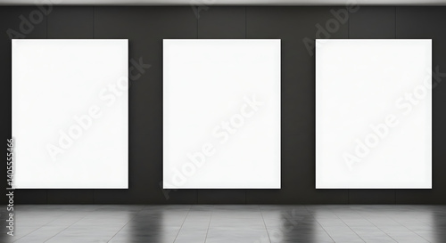 Gallery Wall: Three Blank Canvases, Dark Room AI Generated