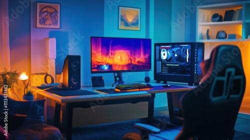 Gaming Setup With Neon Lights