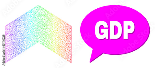 GDP and direction up vector. Spectrum vibrant net direction up, and chat GDP bubble message. Chat colored GDP bubble has shadow. Vector model created from direction up icon with triangular net.