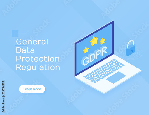 GDPR concept. Modern Flat isometric vector illustration isolated on blue background