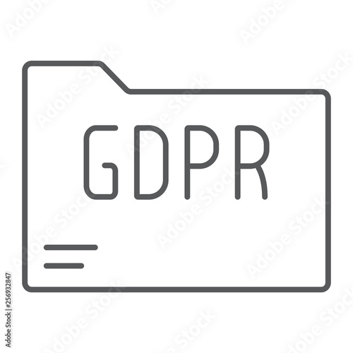 Gdpr folder thin line icon, information and document, file sign, vector graphics, a linear pattern on a white background.