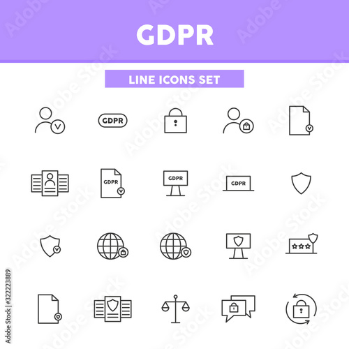 GDPR simple set line icons. Vector illustration symbol elements for web design.