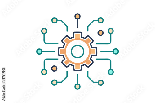 gear circuit lines icon thin line