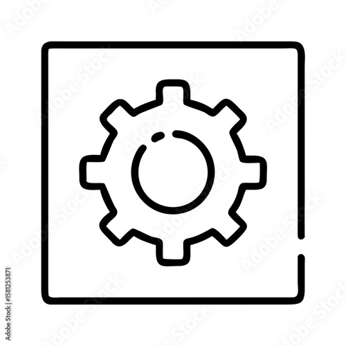 Gear icon in square outline design for technology concepts