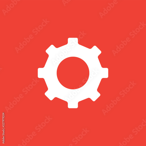 Gear Icon On Red Background. Red Flat Style Vector Illustration
