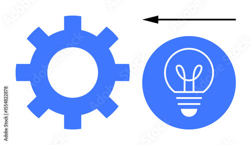 Gear representing process and mechanics, light bulb for creativity and ideas, arrow for progress or transition. Ideal for innovation, workflow, progress, technology, creativity, process and simple
