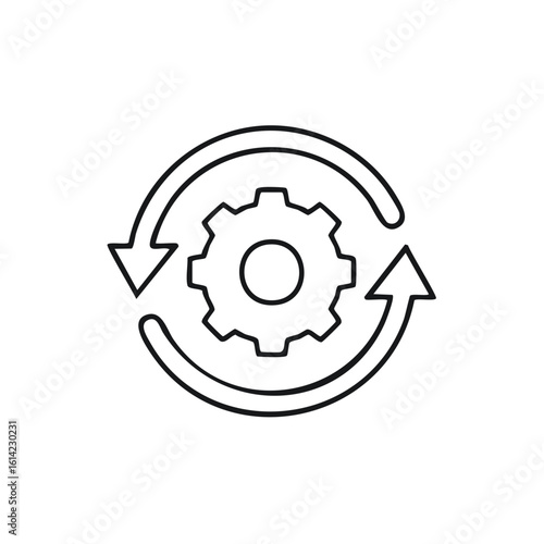 Gear symbol with arrows indicating cycle or process, outline style
