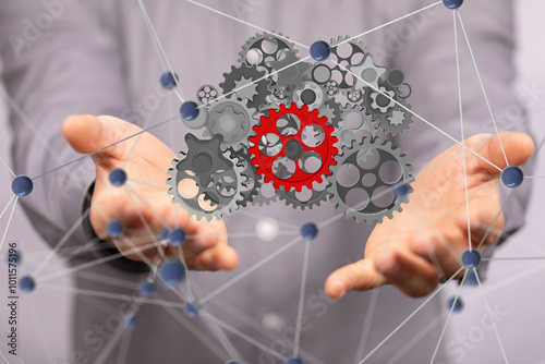 person, gear, success, business, man, concept, hand, cog, inspiration, solution, strategy, teamwork, screen, businessman, energy, symbol, technology, blue, creative, background, achievement, advice, canvasses, conceptual, collaborating, three-dimensional