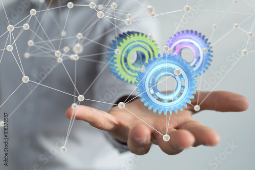 gear system data. Connecting lines and dots.Big data visualization