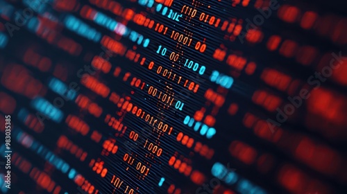 Genetic code flowing as binary data streams, visualizing computational genomics, computational biology, AI-driven genome mapping