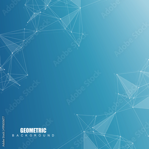 Geometric abstract background with connected line and dots. Structure molecule and communication. Big Data Visualization. Medical, technology, science background. Vector illustration.