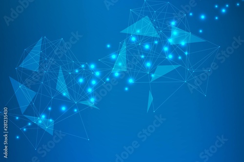 Geometric abstract background with connected line and dots. Structure molecule and communication. Big Data Visualization. Medical, technology, science background. Vector illustration.