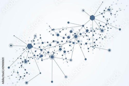 Geometric abstract background with connected line and dots. Structure molecule and communication. Big Data Visualization. Medical, technology, science background. Vector illustration.