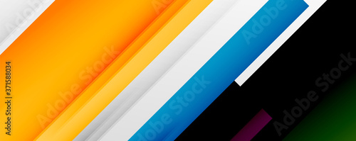 Geometric abstract backgrounds with shadow lines, modern forms, rectangles, squares and fluid gradients. Bright colorful stripes cool backdrops