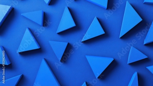 Geometric abstract design with 3D blue triangular shapes arranged on a textured blue surface, creating a modern and bold visual effect.