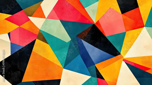 Geometric abstract pattern with sharp angles and bright colors, creating a bold and modern design.