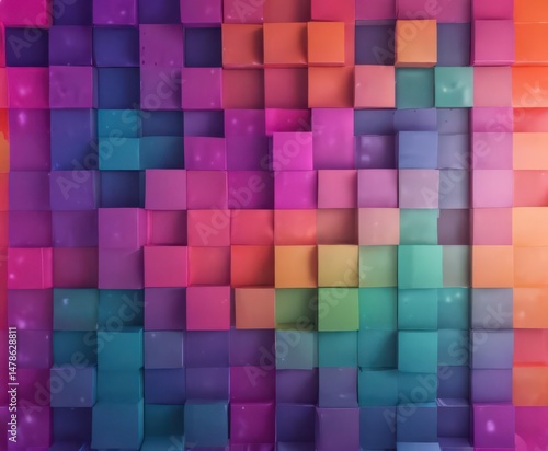 Geometric abstract square pattern, vibrant color gradients , gradient, surface