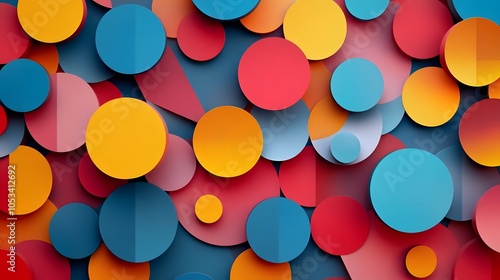 geometric abstraction with repeating circles and polygons in a modern pattern design