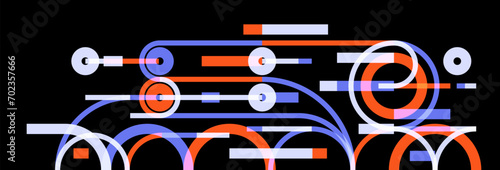 Geometric background with circles and lines vector art, abstract composition technical plan, flat minimal techno system.