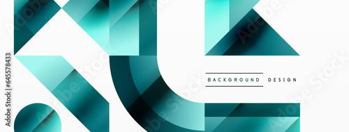 Geometric background with squares, triangles, circles. Shapes harmoniously interact, creating visually striking design for digital designs, presentations, website banners, social media posts