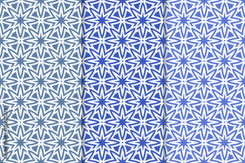 Geometric backgrounds. Blue vertical seamless wallpapers. Colored set