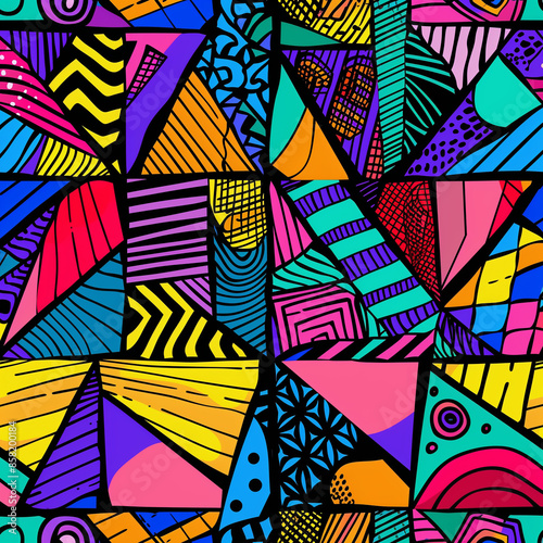 Geometric backhround. Create an abstract background with geometric shapes arranged in a grid-like pattern, with each shape filled with intricate patterns and textures.