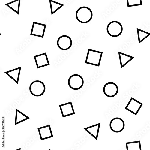 Geometric basic shapes seamless pattern. Circles, squares and triangles texture.