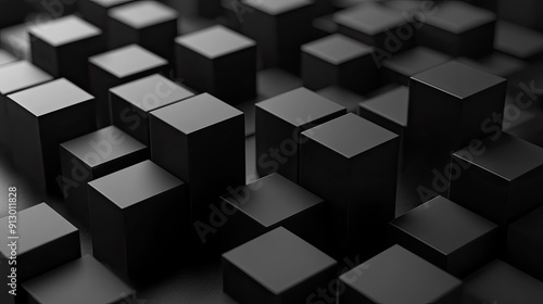 Geometric blocks in 3D render on a sleek black background. Abstract visual. -