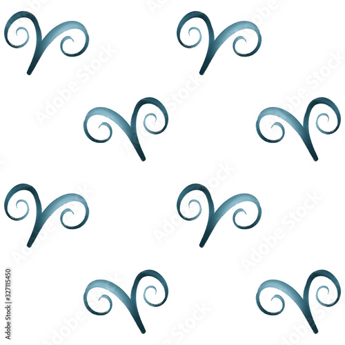 Geometric gouache hand painted seamless swirl pattern in blue, white and teal