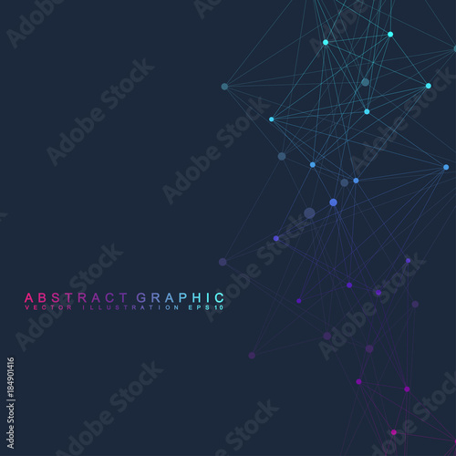 Geometric graphic background molecule and communication. Big data complex with compounds. Perspective backdrop. Minimal array. Digital data visualization. Scientific cybernetic vector illustration.