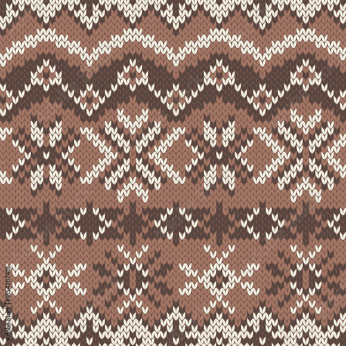 Geometric knitted seamless pattern. Brown trendy color. Vector illustration