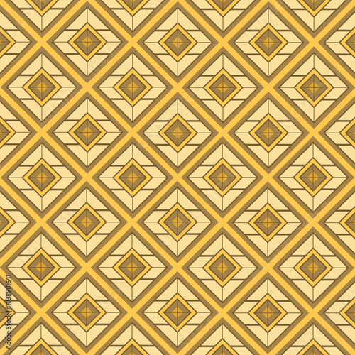 Geometric Pattern Features Interlocking Yellow and Brown Diamonds.