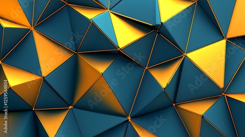 Geometric Pattern with Blue and Gold Triangular Shapes and Textures
