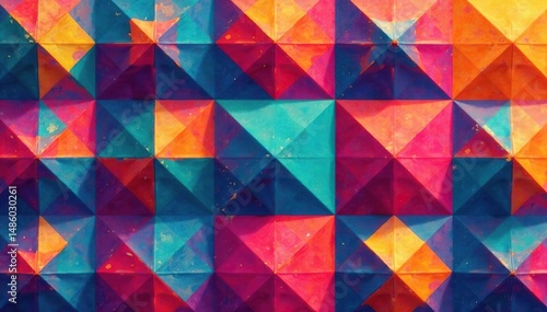 Geometric shapes repeating in a grid formation, bold colors , composition, angles
