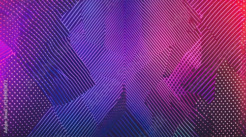 Geometric triangle pattern with neon gradient colors, creating a sharp modern aesthetic.