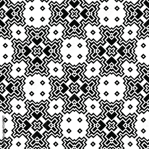Geometric vector pattern with triangular elements. Seamless abstract ornament for wallpapers and backgrounds. Black and white colors.
