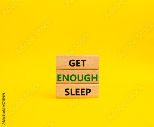 Get enough sleep symbol. Wooden blocks with words Get enough sleep. Beautiful yellow background. Healthy lifestyle, medical and Get enough sleep concept. Copy space.