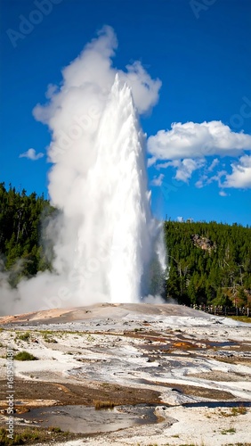 Geyser erupting into a vivid blue sky