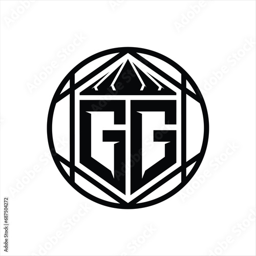 GG Letter Logo monogram hexagon slice crown sharp shield shape isolated circle abstract style design