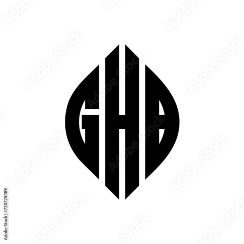 GHB circle letter logo design with circle and ellipse shape. GHB ellipse letters with typographic style. The three initials form a circle logo. GHB Circle Emblem Abstract Monogram Letter Mark Vector.