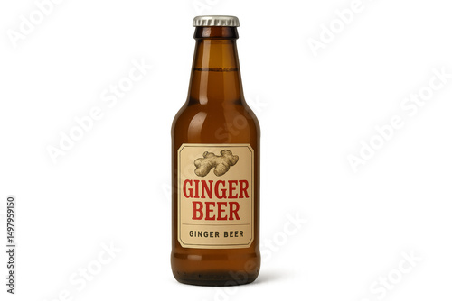 Ginger beer bottle standing on transparent background