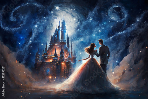 girl and boy in a ball gown dance a waltz. Generative AI