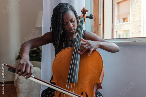 Girl with cello by an open window