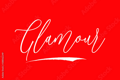 Glamour. Glamour. Cursive Calligraphy/Typography White Color Text On Red Background
