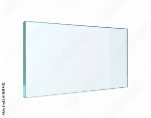 Glass panel on white backdrop; clear with light turquoise edges in bright and clean ambiance