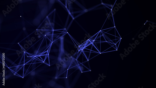 Glitch blue network connection technology. Abstract structure backdrop with points and lines. Big data visualization. 3D rendering.