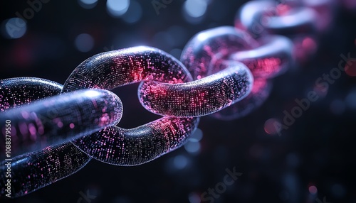 Global blockchain network with dynamic flowing information and binary code, 3D digital illustration of distributed ledger technology and realtime data exchange